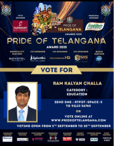 I am truly honored to be selected as a finalist for the Pride of Telangana Awards 2025. This recognition is not just about me, but about our collective effort through Coding on Wheels, where we are teaching coding, AI, and robotics to children in slums and underprivileged communities.